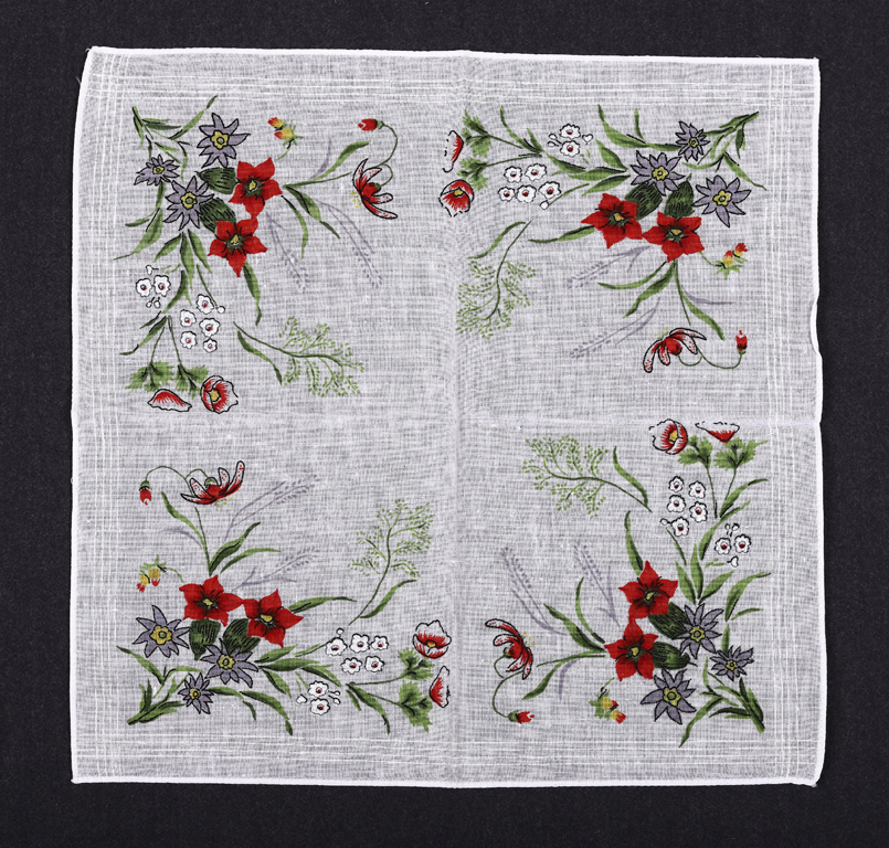W 2021 roku do Muzeum Etnograficznego w Rzeszowie darowano ok. 50 chusteczek, które (poza najstarszymi obrębionymi szydełkową koronką) zdobią różnorodne hafty lub nadruki, począwszy od kwiatowych, skończywszy na takich, które swoja tematyką nawiązują do postaci z bajek. Część z nich można zobaczyć na najnowszej wystawie czasowej: „Skarbony pamięci”. Serdecznie zapraszamy!