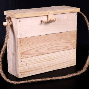 - Tornister szkolny – drewniana skrzynka na tabliczkę z rysikiem i elementarz, replika, wyk. Jan Puk