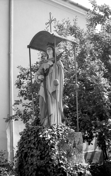 - Figura św. Katarzyny, rynek w Strzyżowie, 1975, fot. F. Kotula