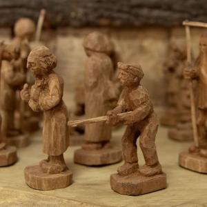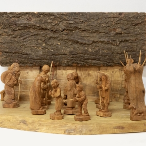 Poniżej prezentujemy jeden z naszych najnowszych nabytków. Jest to szopka bożonarodzeniowa, której twórcą jest Adam Rąpała, jeden z najbardziej cenionych jasielskich twórców nieprofesjonalnych. Wykonana została z kory topoli, a interesującym zabiegiem jest zaprezentowanie w niej postaci z akcesoriami kolędniczymi.