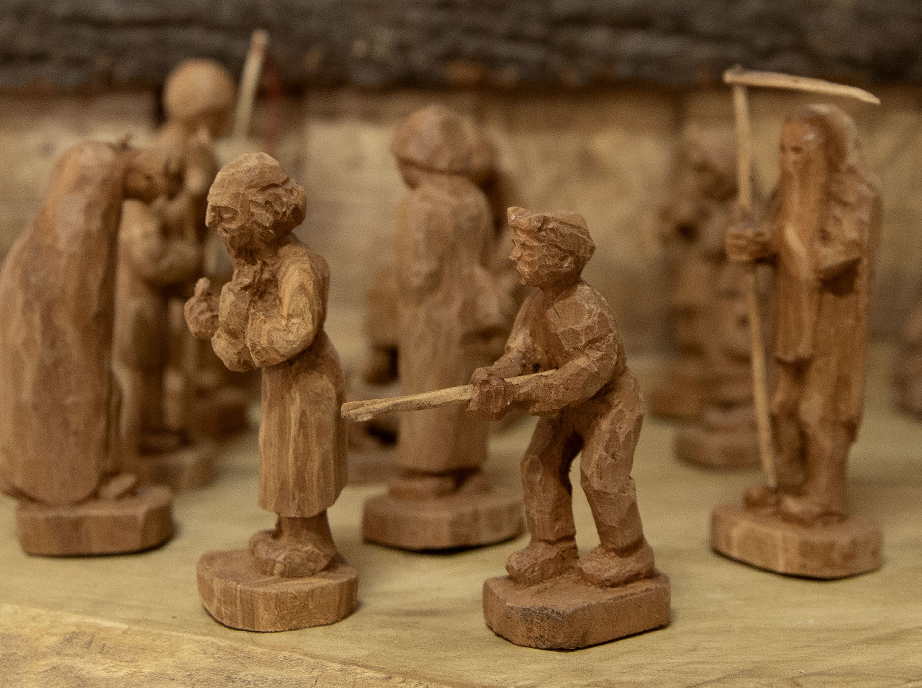 Poniżej prezentujemy jeden z naszych najnowszych nabytków. Jest to szopka bożonarodzeniowa, której twórcą jest Adam Rąpała, jeden z najbardziej cenionych jasielskich twórców nieprofesjonalnych. Wykonana została z kory topoli, a interesującym zabiegiem jest zaprezentowanie w niej postaci z akcesoriami kolędniczymi.