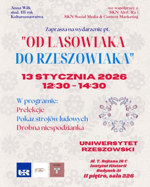 Serdecznie zapraszamy na wydarzenie „Od Lasowiaka do Rzeszowiaka”, które odbędzie się 13 stycznia 2026 r. na Uniwersytecie Rzeszowskim. Tematem głównym...