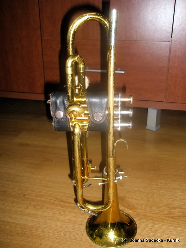 Zdjęcie nr 2 – trąbka J. Korzyckiego, na której gra obecnie, wykupiona z lokalnego zakładu pracy po likwidacji tamtejszego zespołu muzycznego, produkcja współczesna