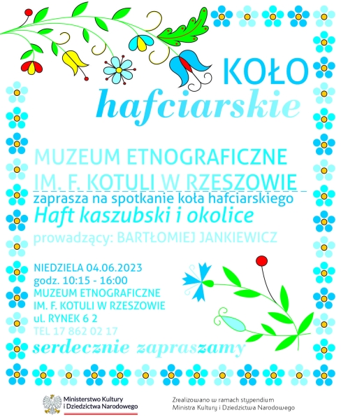 Zapraszamy na kolejne warsztaty haftu lasowiackiego. Jak zwykle prowadzącym będzie Pan Bartłomiej Jankiewicz. 25.10. 2023 (środa) o godz. 10. Prosimy...